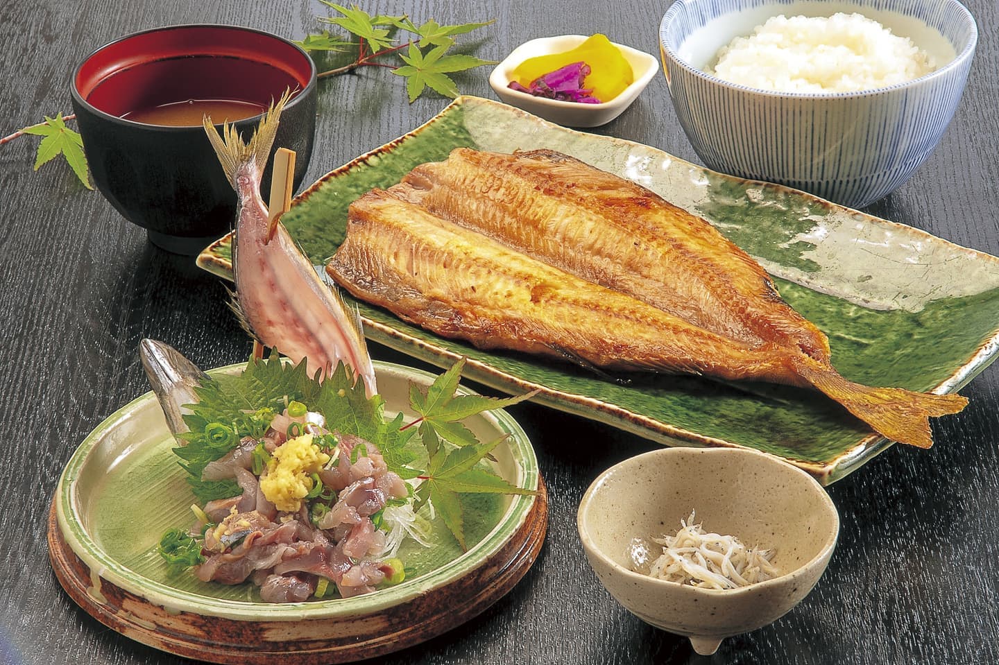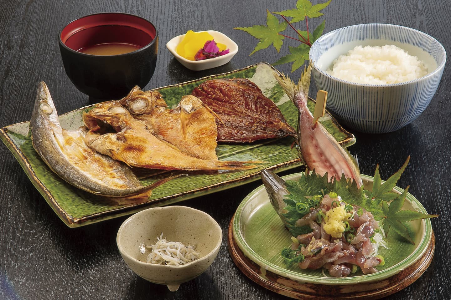 三種干物定食とあじのたたき